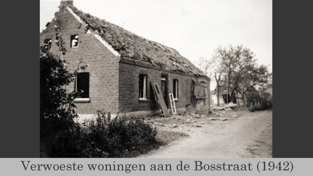 In de vroege ochtend van 1 augustus, toen Engelse bommenwerpers een aanval deden op Düsseldorf, kwam een van de vliegtuigen in problemen en liet 9 bommen vallen in het gebied van de Bosstraat. De aangerichte schade was enorm. Zes dorpsgenoten werden hierbij gedood.