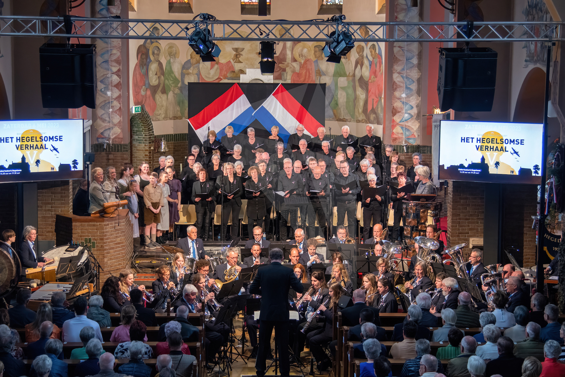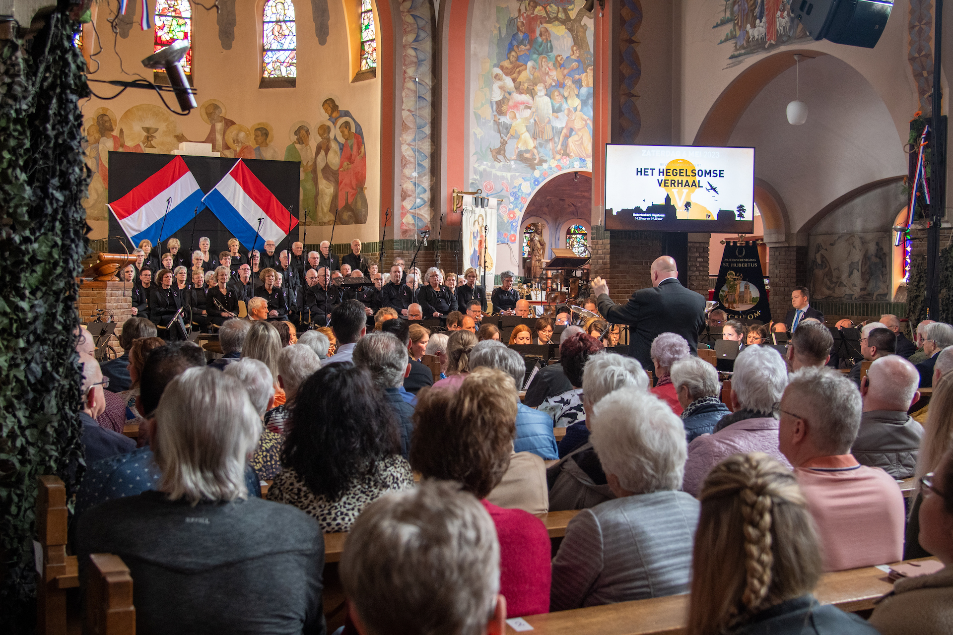 Het begon heel klein, werd groter, kwam tot stilstand door Corona en is begin 2023 weer opgepakt. Omdat het zo’n groots gebeuren zou worden, werd al snel besloten om niet één, maar twee concerten te organiseren. In een unieke samenwerking zijn deze Bevrijdingsconcerten op 6 mei 2023 uitgevoerd waarin “het Hegelsomse Verhaal” werd verteld. Dit “Hegelsomse Verhaal” is door vrijwilligers van onze Heemkunde in elkaar gezet.