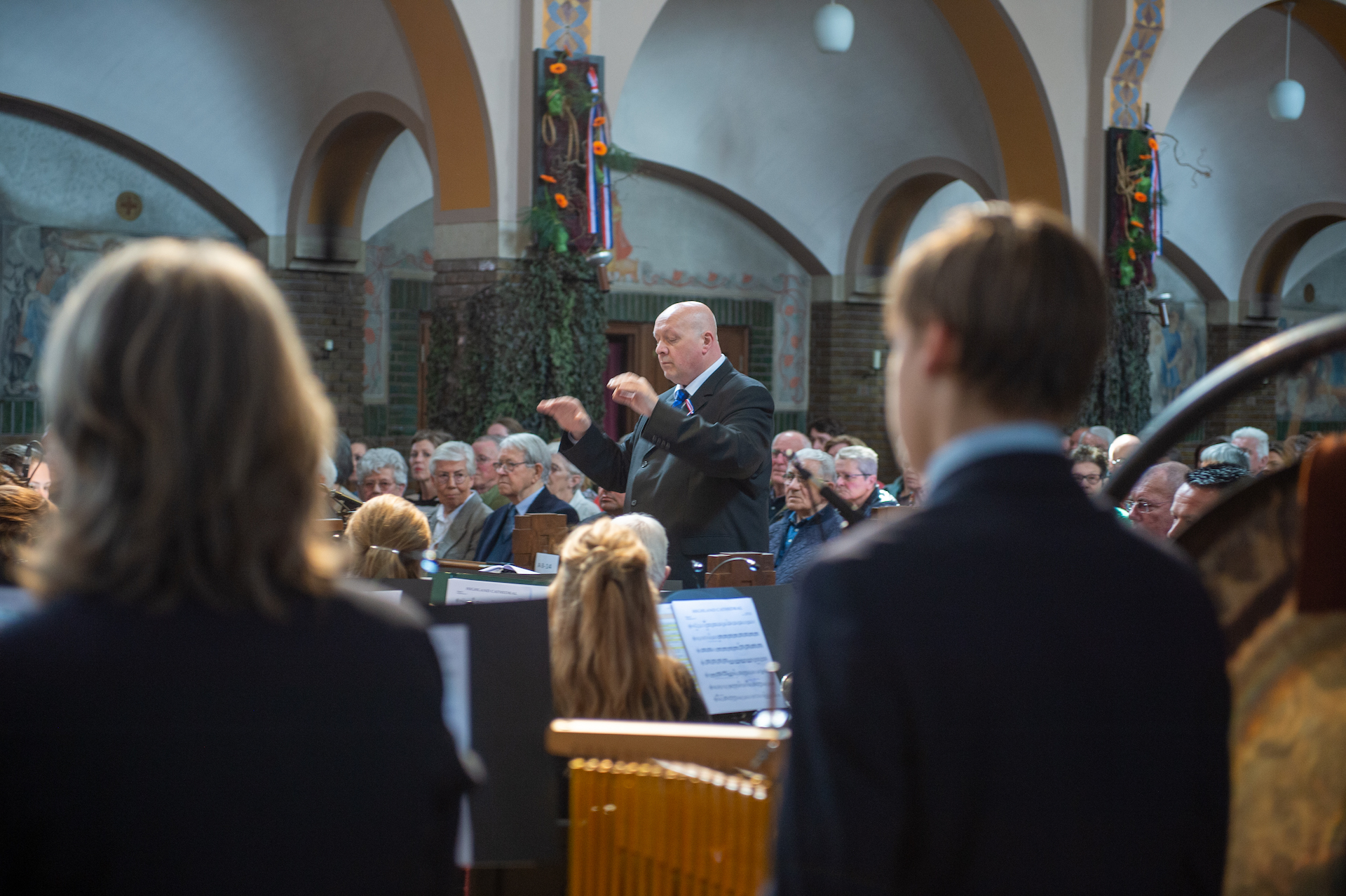 Dirigent als zowel de fanfare speelde en de koren zongen: Eric Roefs