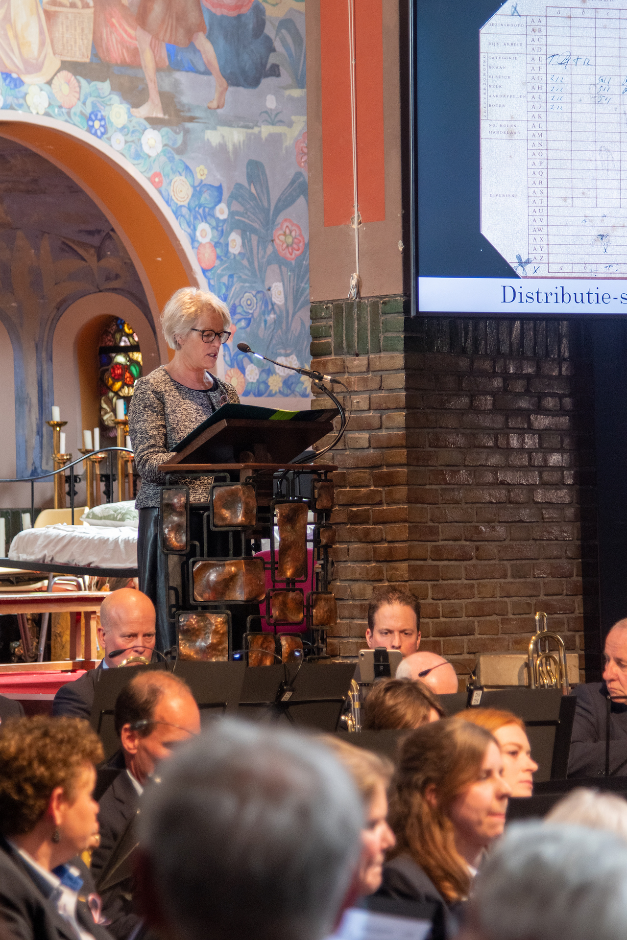 De zwarte tekst werd in het Nederlands gelezen door Mariet Zanders en